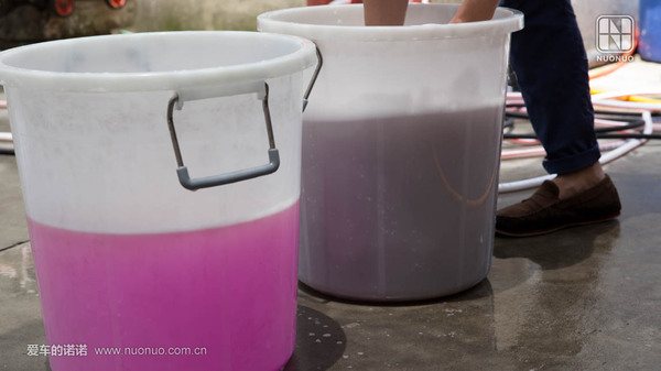 在一家不大不小的洗車(chē)店洗車(chē)的時(shí)分洗車(chē)小哥就用一塊羊毛巾清潔全車(chē),但每次擦試完一個(gè)漆面就在桶里清潔。自認為洗車(chē)都比外面洗得好的我,對此洗車(chē)方法產(chǎn)生了濃厚的興趣。隨后的扳話(huà)中得知了這種洗車(chē)方法是“兩桶水洗車(chē)”。